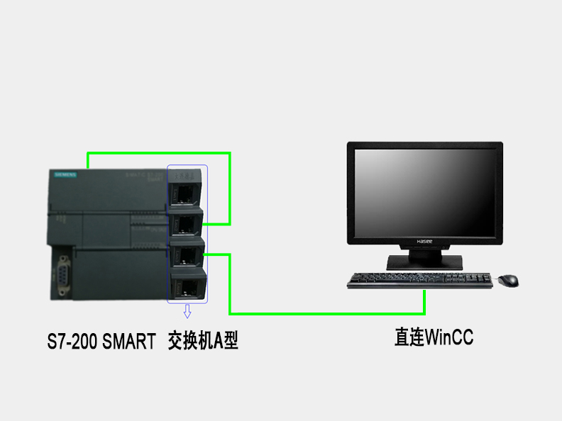通過多功能交換機,可將西門子S7-1200/1500/S7-300PN PLC與西門子SMART LINE精彩系列觸摸屏連接。或S7-200SMART 直連WinCC功能。